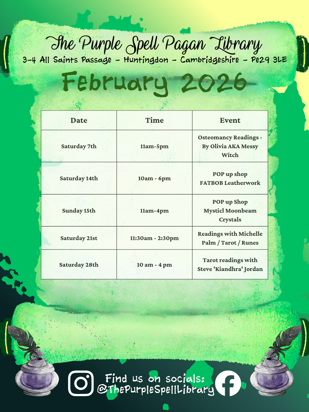 The Purple Spell and Mystical Moonbeam are happy to be co-hosting The Huntingdon Alternative Fayres throughout 2025 covering all items Witchy, Geeky and Nerdy! Come and have a look and see what you can find. For full details, follow the link below.