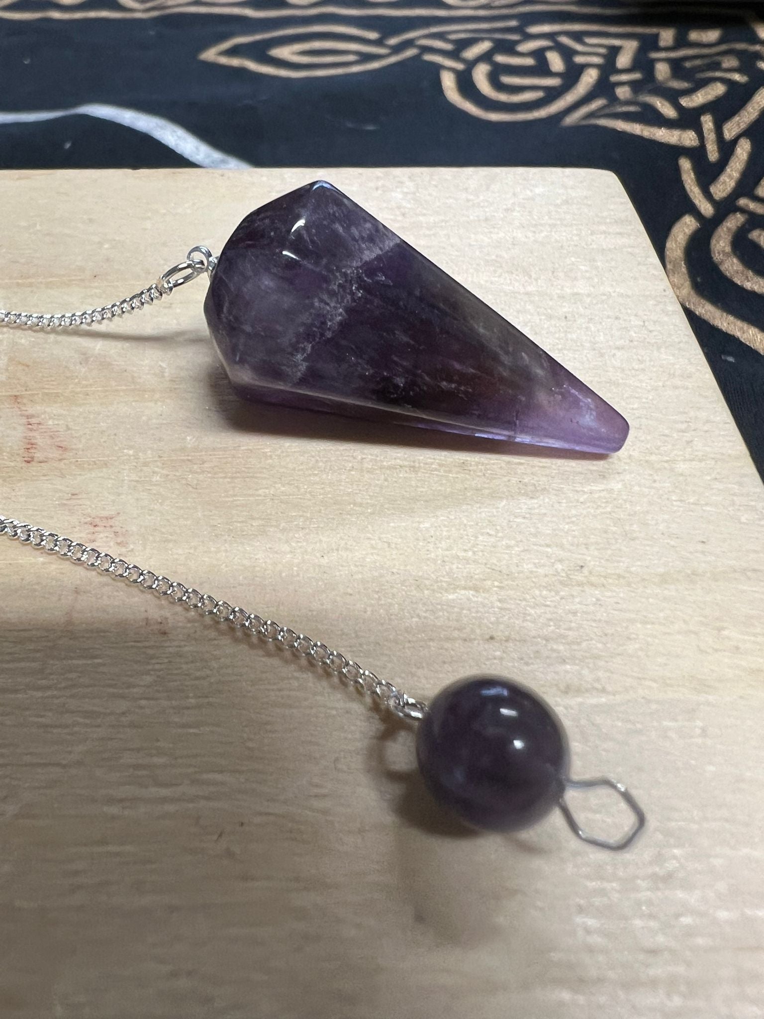 - Pendulum with a beaded stopper on the end of the chain