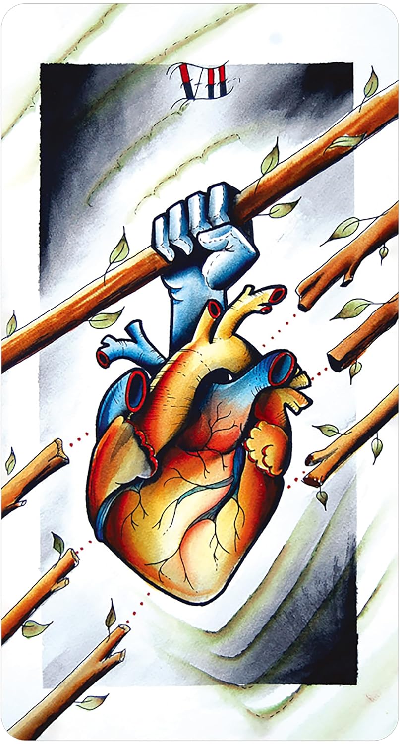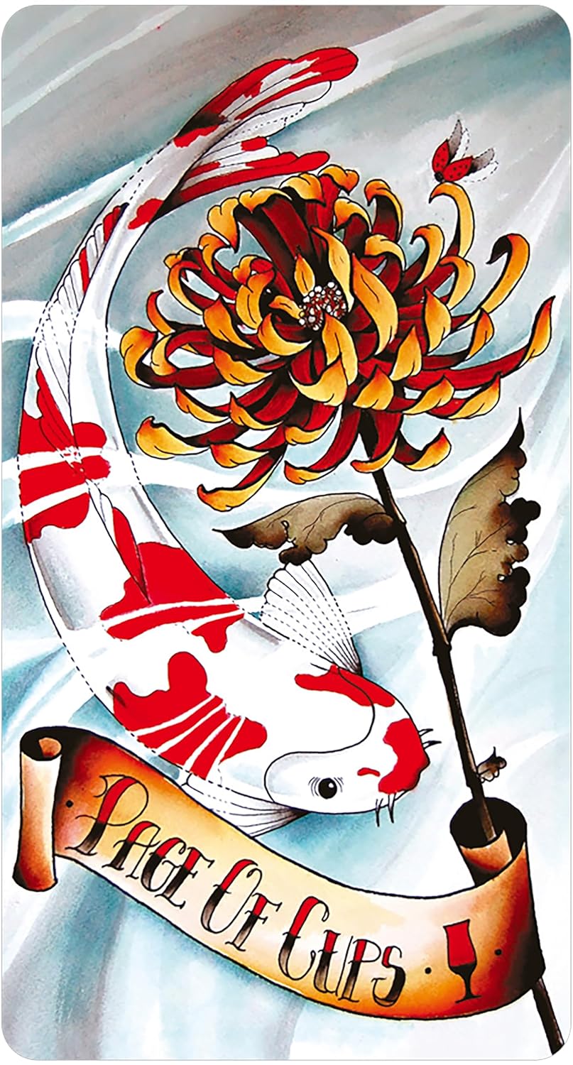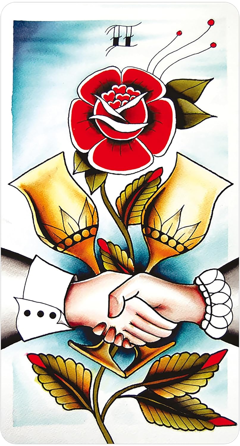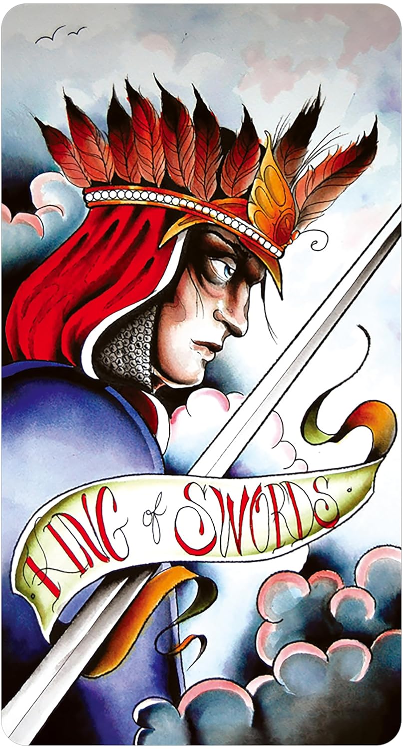 Mini borderless cards feature vivid, hand drawn and painted art created in the watercolour spit shade style. The art forms and iconic imagery in the 78 cards pays homage to tattoo and tarot traditions. Includes 76page booklet of card meanings.