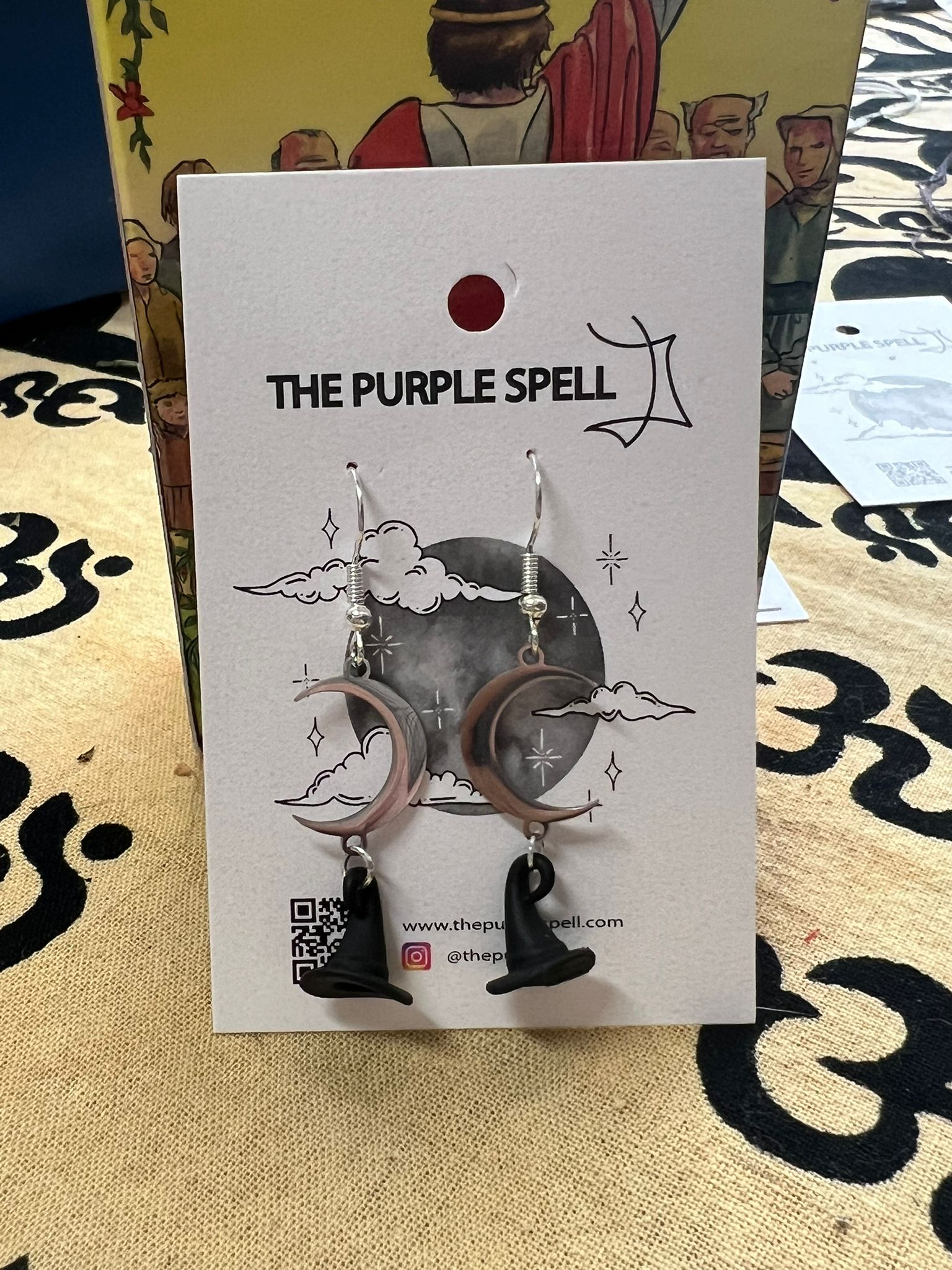 Moon and Witch Hat Dangle Earrings | Witchy Jewellery | Goth | Wiccan