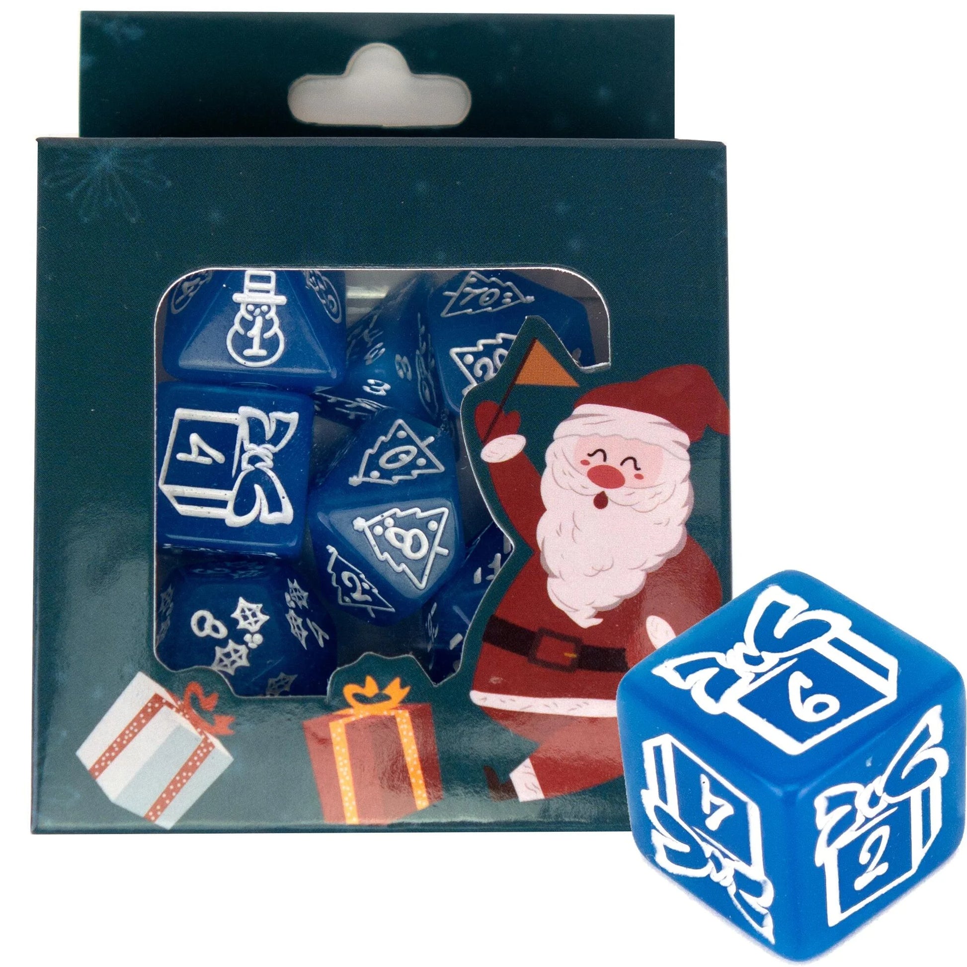 Poly Dice Set | Christmas Edition | Blue (White) | Dungeon and Dragons Dice