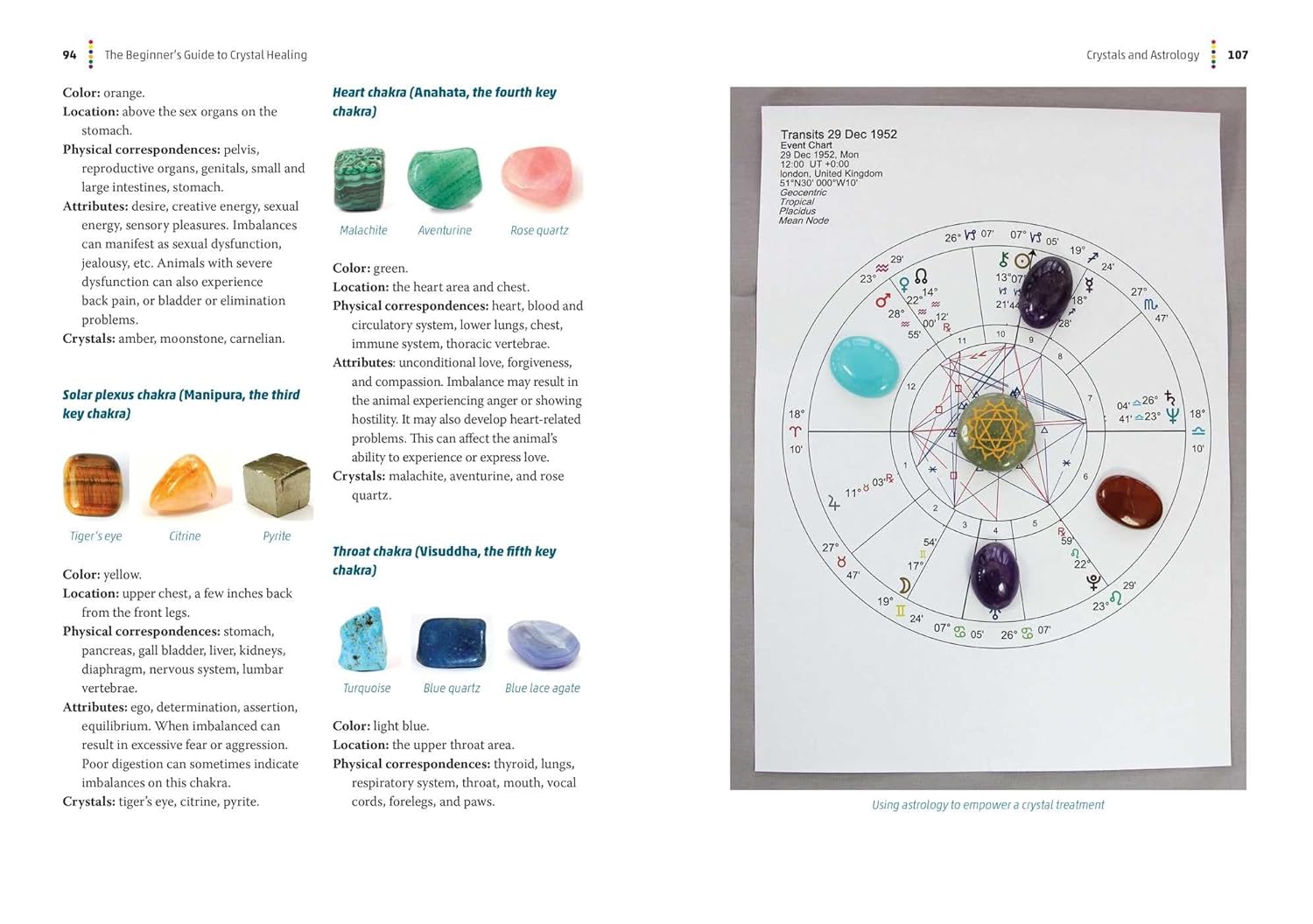 The author explains how to choose your crystals and cleanse them, how to energize and charge them, and how to get to know your crystals and attune to them. Examining the correspondences between stones and colors, she looks at how to use crystals in color therapy and how to work with color to create crystal mandalas. She discusses the effects of crystals on the chakras, the meridians, and the aura and explains how to craft your own gem essences and how to identify and deal with toxic crystals. She looks at the relationship between crystals and astrology, numerology, and sacred geometry—providing several crystal grid layouts—as well as how to use gemstones for connecting with spirit guides, angels, and ascended masters. The author also explores techniques for using crystals for healing animals, for ancestral healing, and for combining crystals with other healing modalities, including Reiki, reflexology, acupuncture, and massage.